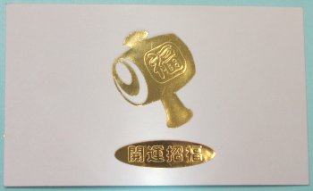 新発売! 黄金の名刺 (和紙に小判型のステッカー) 幸運のステッカーを名刺に活用 (光る金色のカッティングシートの切り抜き) |