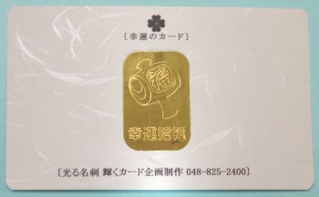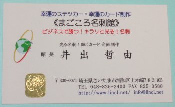 | 〔幸運のステッカー活用ガイド〕 〔幸運の名刺〕 〔黄金の名刺・幸運のカード〕 〔名刺のご購入〕 〔名刺作成TOPページ〕 〔サイトTOPページ〕 |