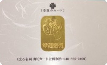 ◎ここ10数年、カッティングシートを切り抜いた切り文字と、切り文字看板、 そして金色印刷をした「こだわりの名刺」を数多く作ってきました。 (個人情報で公開できません) 表面が和紙(しこくてんれい)の用紙に、家紋や無線クラブのロゴなどを 金色印刷した名刺は、なんといっても金色(ゴールド)の輝きが魅力です。 シンプルな名刺ですが、和紙に金色の輝きが引き立つ!まさに、光る名刺!輝く名刺!です。 名刺やカードで、ワンポイントでも金色のロゴなどが印刷されていると目立ちます。 金色のカッティングシートを切り抜いた切り文字やロゴを名刺に直接貼ることで、 スゴい迫力の名刺になります。 (金色のカッティングシートの輝きは、印刷やシールより抜群のインパクトがあります) ◎そこで、この和紙の風格と、金色のカッティングシートの輝きを活かした、 黄金の名刺・黄金のカード(幸運のカード「名刺型」)を発売することとしました。 幸運のカード(名刺型)は、和紙(しこくてんれい・厚み約0.27mm) を採用しましたので、 手触りが良く、高級感、重厚感があります。 表面に縁起の良い幸運のステッカーを貼り、裏面に商品やサービスなどを紹介することもできます。 そうすることで、「縁起の良い、お宝!」 “福の紙” として喜ばれ、絶対に捨てられことはありません。 飾っておきたくなる! 「光る名刺!輝くカード」が実現します。 また会社や、お店の名刺(ショップカード)、商品のPRやキャンペーン用としても活用できます。 さらには、お守りなどのグッズとしても利用できます。 幸運のカードは高級感がありますので、名刺のほかに贈答品に添えるカードとしても使えます。 また、書籍や、新商品のPR用として利用すれば大きな効果があります。 現代のビジネス社会を生き抜くために、名刺の二刀流 〜ビジネス社会を生き抜く〜営業の切り札!【 勝負の名刺 】 《光る!名刺・輝くカード》 名刺交換で二つ目の、もう一枚の名刺を渡そう! 「お手持ちの名刺」+「光る!名刺、輝くカード」 暖かみのある「和紙の名刺」で相手の心が和む! 日本の伝統が息づく「和紙の魅力」に輝く金色が冴える! 和紙でハイセンスの名刺 ! 繁盛名刺! 黄金の名刺 ◎素晴らしい出会いに感謝の気持ちで、心をこめた名刺、まごころ名刺を渡しましょう! 現在はとにかくカラフルでなおかつ、写真入り名刺、似顔絵名刺、QRコード入り名刺など多種多彩です。 また、裏表を有効に使った名刺や、2つ折りの情報量の多い名刺などもあり、用紙も様々なものを使っています。 このような多彩な名刺の中で埋もれないために、シンプルでもインパクトがある印象に残る名刺を作りましょう。 出会いに感謝し、心をこめて幸運のステッカー(名刺用ステッカー)を貼ることで、 もらってうれしい!キラリと光る!幸運の名刺(まごころ名刺) が出来上がります。 心をこめると、それは大きな力となります。想いには力があります。 |