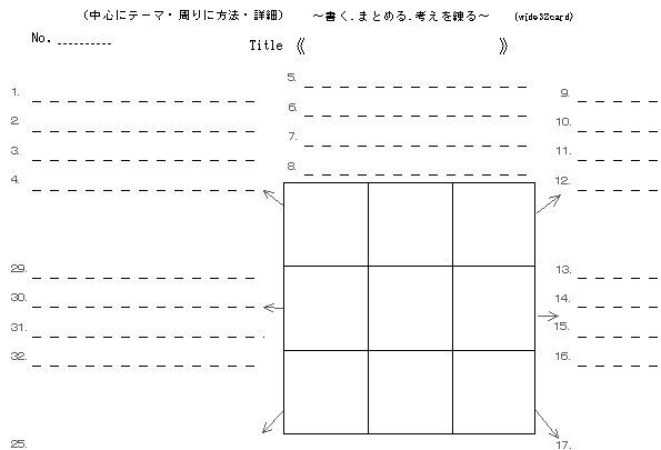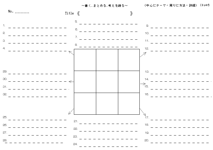 8つの升目(セル)のテーマ、課題について、それぞれ4つの方法が記入できる